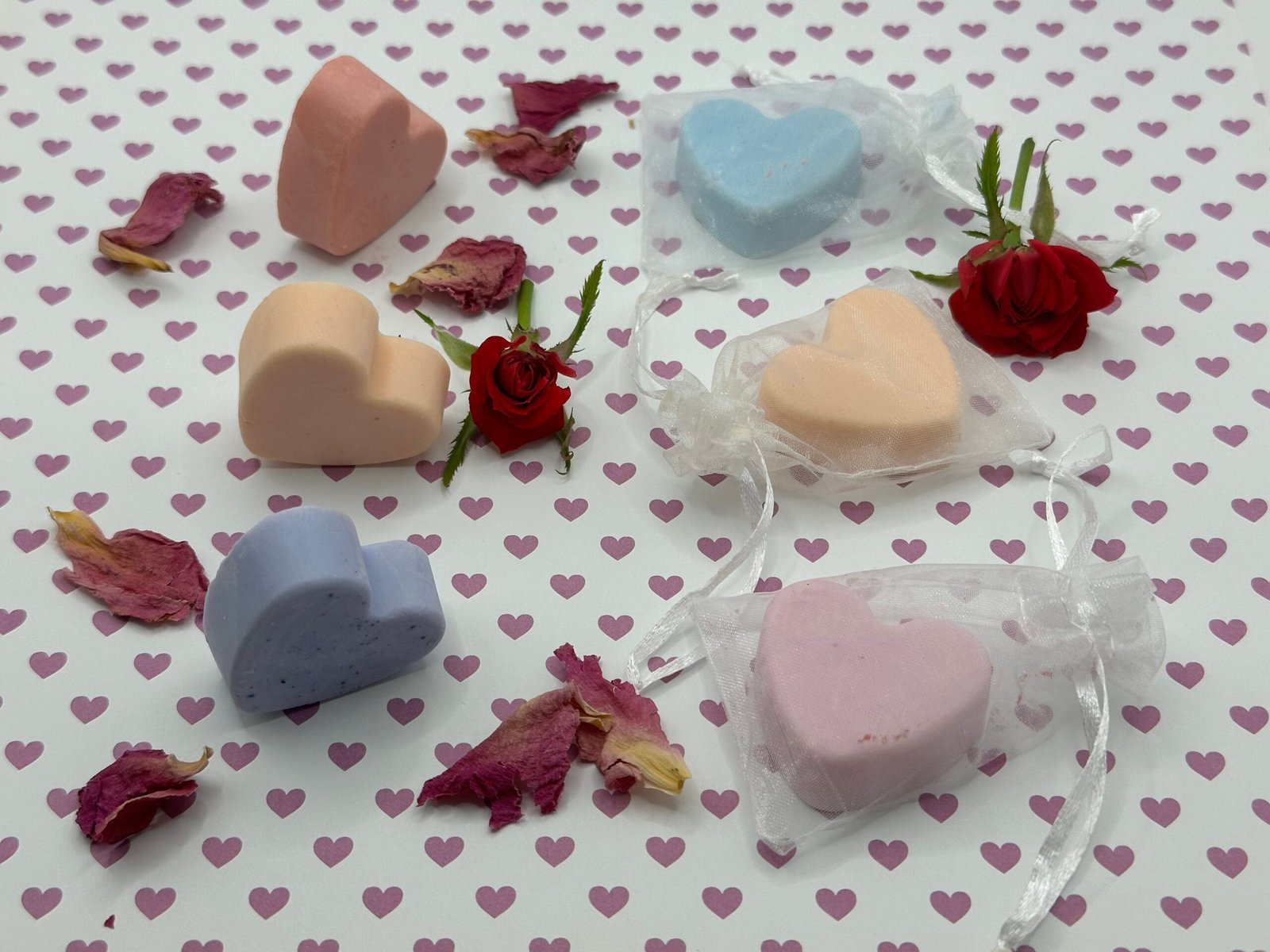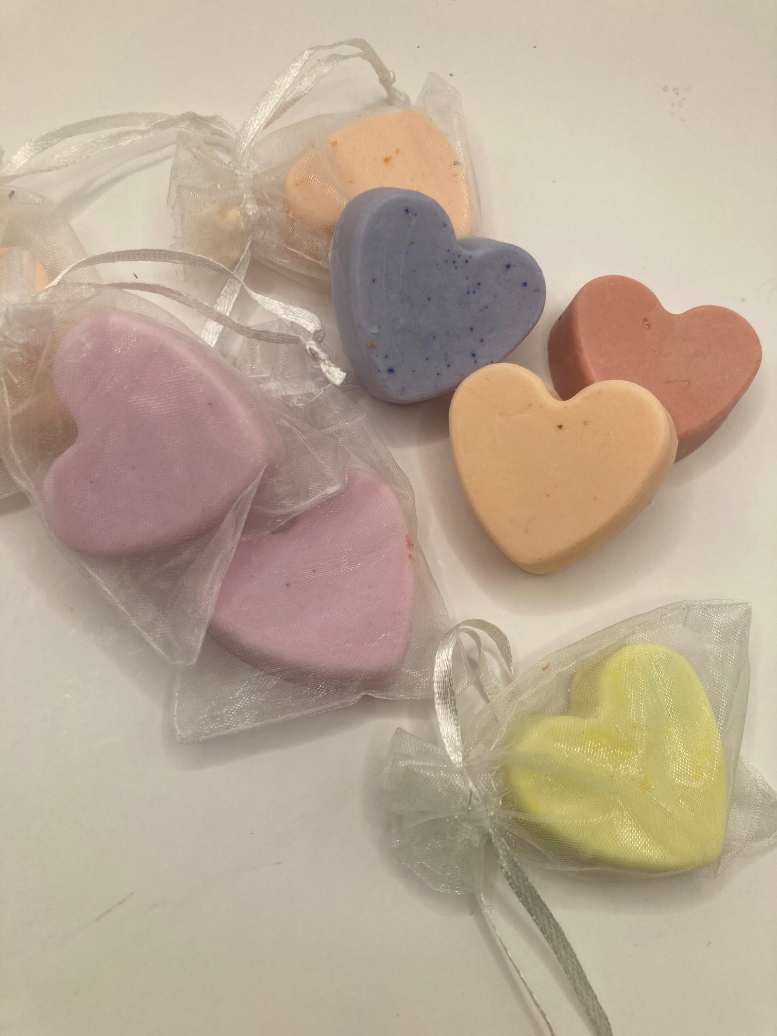 Embrace the essence of love with our Heartfelt Harmony Bundle, featuring an array of 8 beautifully crafted heart-shaped soaps, each imbued with an exquisite fragrance. Indulge in Lavender, Rose Petal, Peppermint, Eucalyptus, Sea Salt & Orchid, Vanilla, Black Raspberry, and Citrus Spice. Each soap offers a luxurious lather and a delightful fragrance, perfect for gifting or personal indulgence. Add a touch of warmth and elegance to your daily routine with the Heartfelt Harmony Bundle, leaving your skin feeling refreshed and wonderfully scented. Experience the harmony of love with every wash!