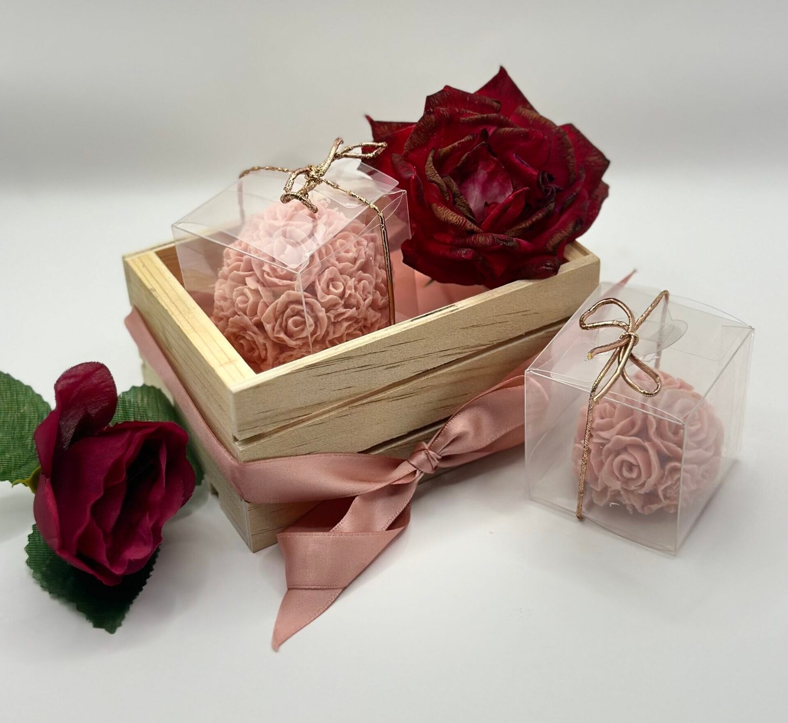 Experience the charm and luxury of our Rose Petal Globes. Shaped like a beautiful globe of rose petals, this exquisite, handcrafted soap offers a gentle and refreshing cleanse, leaving your skin feeling soft and rejuvenated. The delicate floral fragrance will delight your senses, making each use a soothing and aromatic experience.